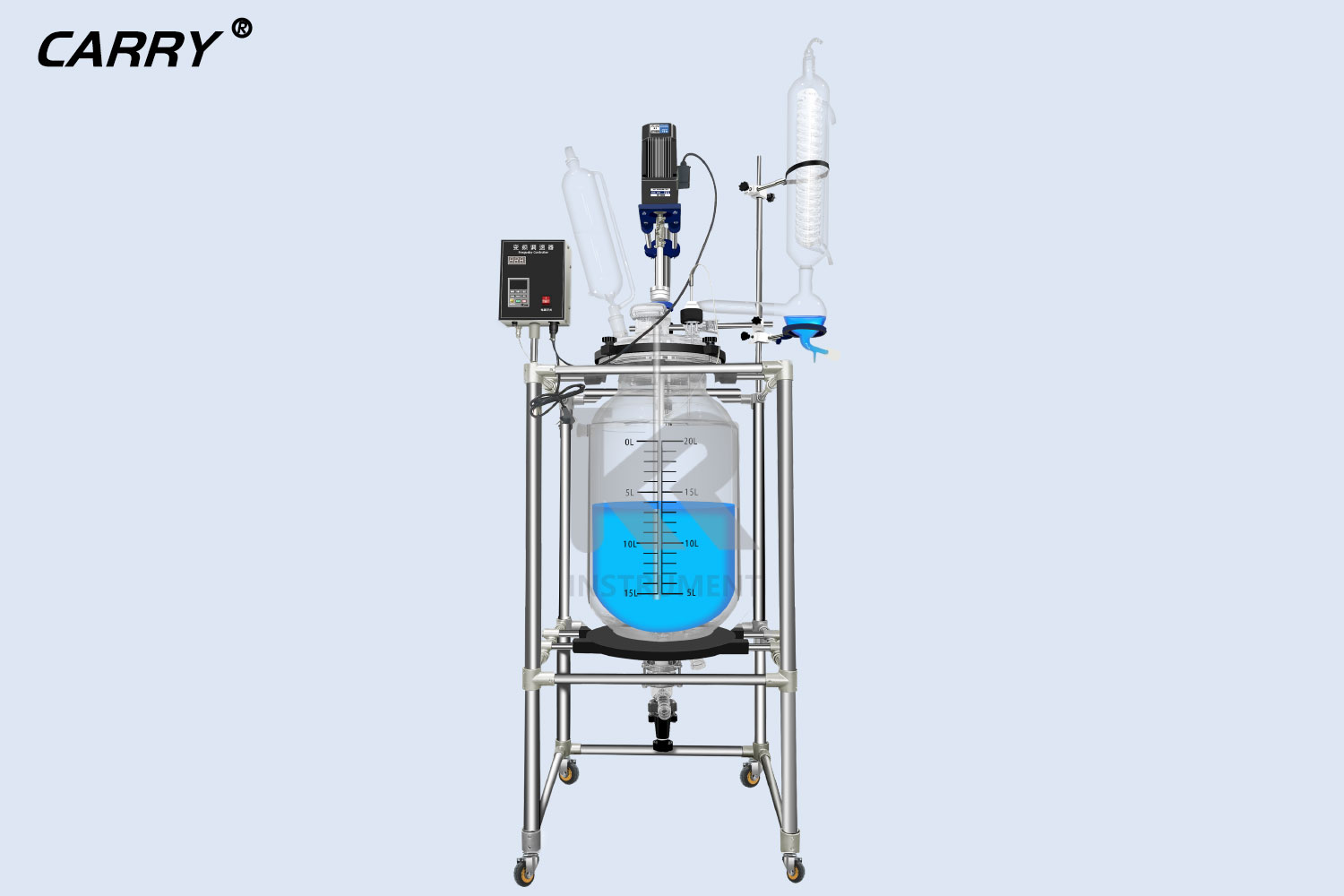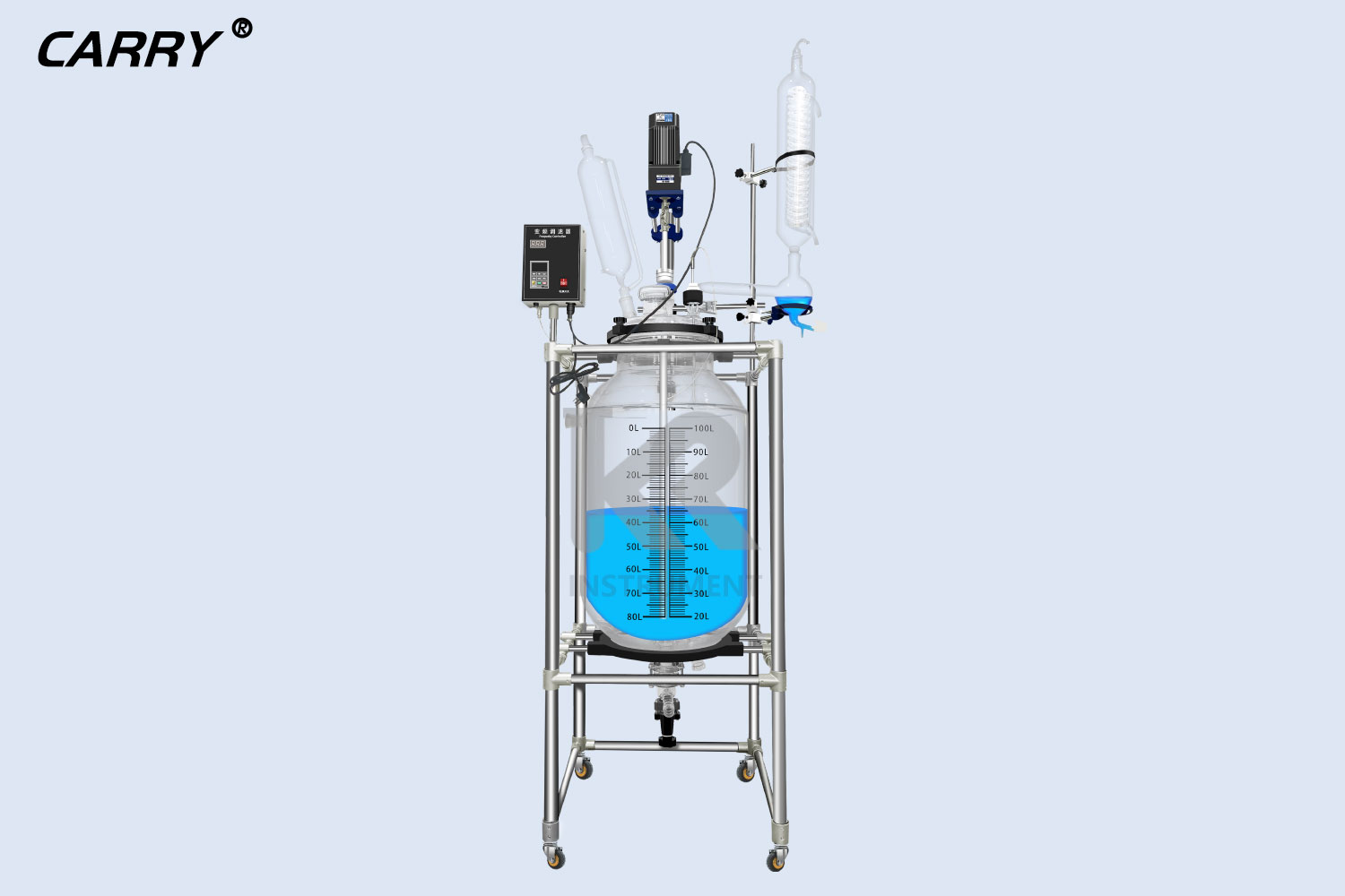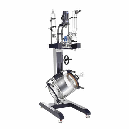2L單層玻璃反應釜具有電動恒速攪拌系統、冷凝、滴加系統、加熱浴鍋。在攪拌...
