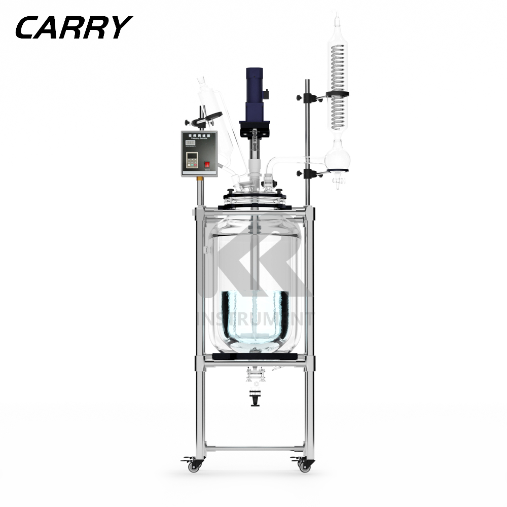 50L雙層玻璃反應釜具有電動恒速攪拌系統、冷凝、滴加系統,釜體夾層需外接...